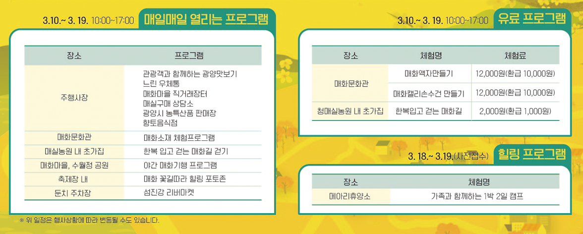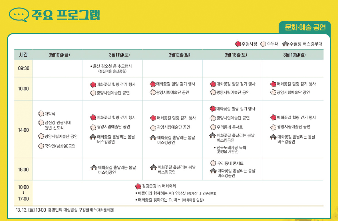 광양매화축제 주요 프로그램 안내