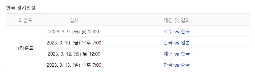 □ 2023 wbc 한국 경기 일정