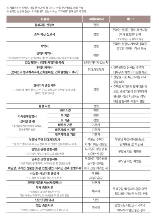 ※월세가 60만 원을 초과하더라도 보증금 월세 환산액과 월세액을 합산하여 70만 원 이하인 경우 지원가능