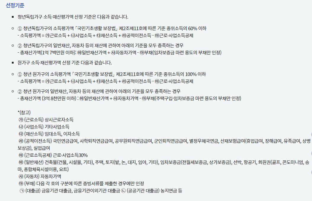 청년독립가구 소득이 기준 중위소득 60% 이하, 원가구 소득이 중위소득 100% 이하 청년