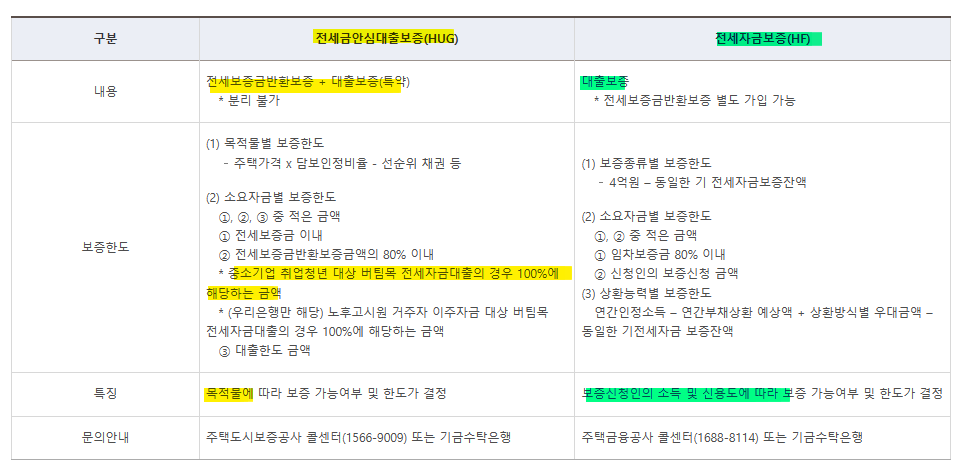 1. 전세금안심대출보증(HUG)