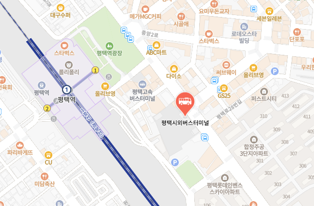 인천-평행 고속버스는 평택시외버스터미널에 하차합니다. 출발 전에 터미널 위치를 확인해두세요!
