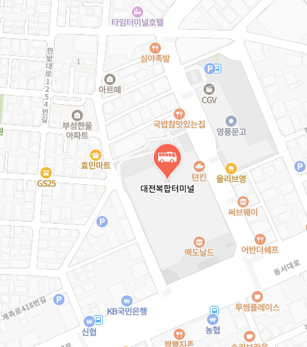 ✅대전으로 향하는 버스는 대전복합터미널에 멈추니, 하차 지점을 미리 지도에서 체크해보세요.