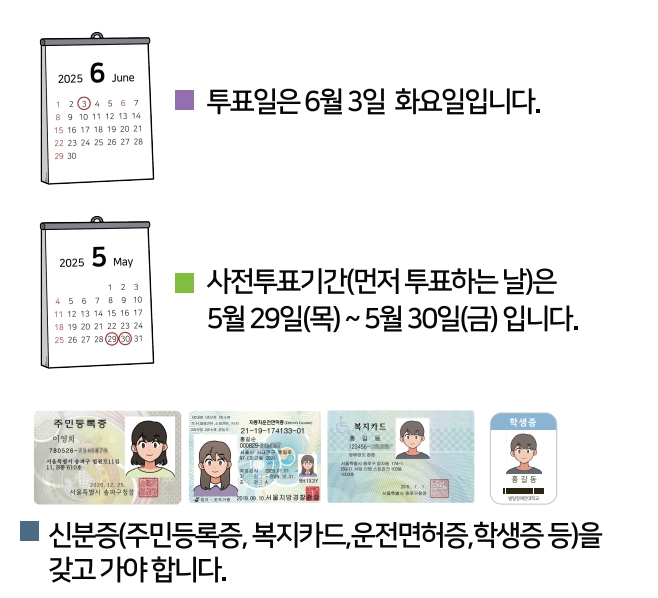 사전투표 일정은 2025년 5월 29일부터 30일까지이며, 하루 중 오전 6시부터 오후 6시까지 가능합니다.