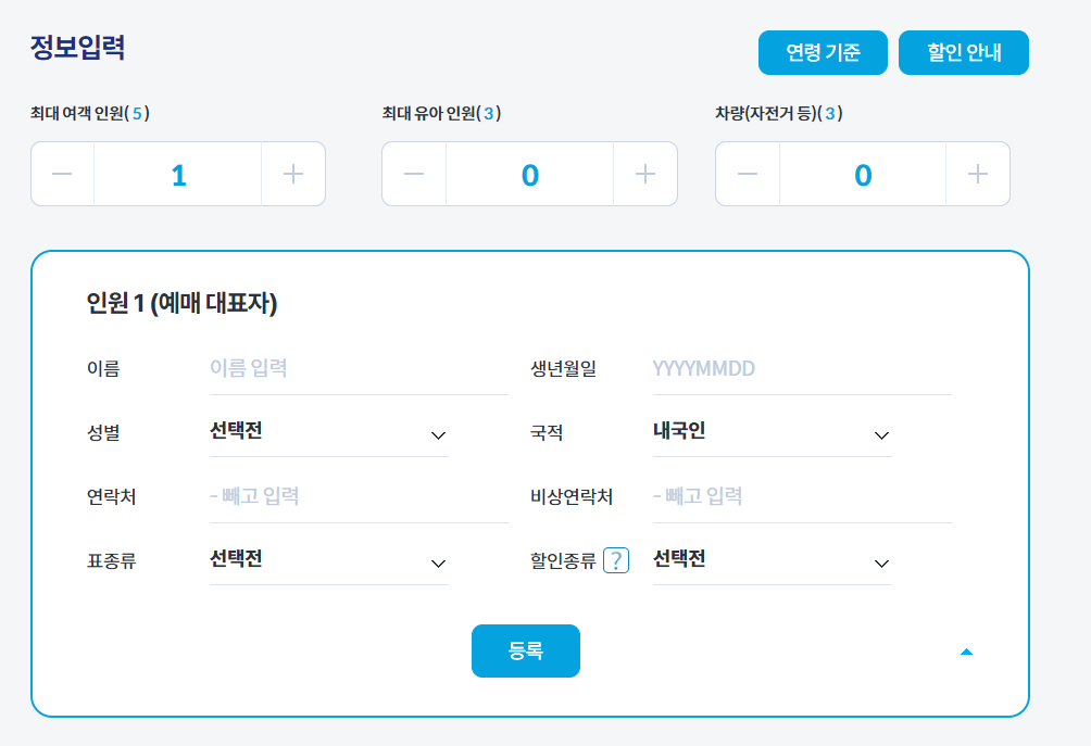 3) 여객 정보 입력