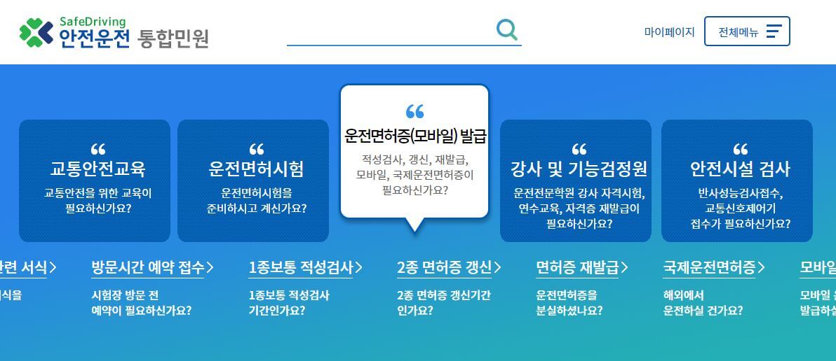 1. 운전면허증 발급(1종보통 적성검사 및 2종 면허증 갱신)