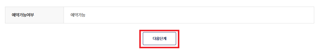 예약 가능하다고 나오면 다음단계를 클릭하시기 바랍니다.