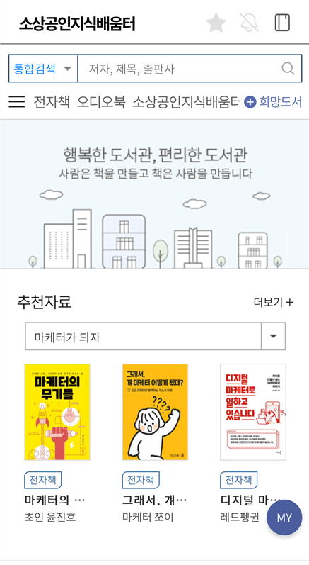 위의 과정을 거쳐 소상공인 지식배움터 전자도서관을 이용할 수 있게 되었다면 모바일로도 이용할 수 있습니다.