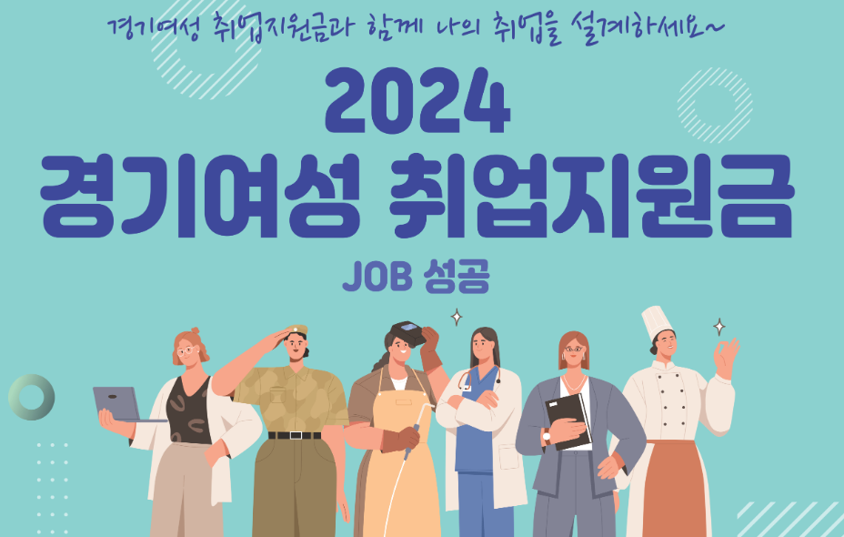 적극적 구직의사가 있는 미취업 여성들의 재취업 활성화를 위하여 2024년 경기여성 취업지원금 사업 지원대상자를 모집합니다.