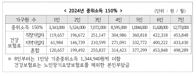 | ④가구소득 | 기준중위소득 150%이하 가구 |