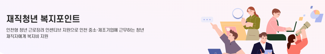 청년들의 장기 재직 근속 유도를 위해 '인천 재직청년 복지포인트 사업' 참여자를 모집합니다.