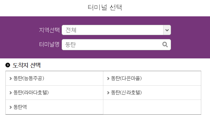 인천공항에서 출발해서 동탄역으로 가는 버스 예약 방법을 예시로 설명드리겠습니다.