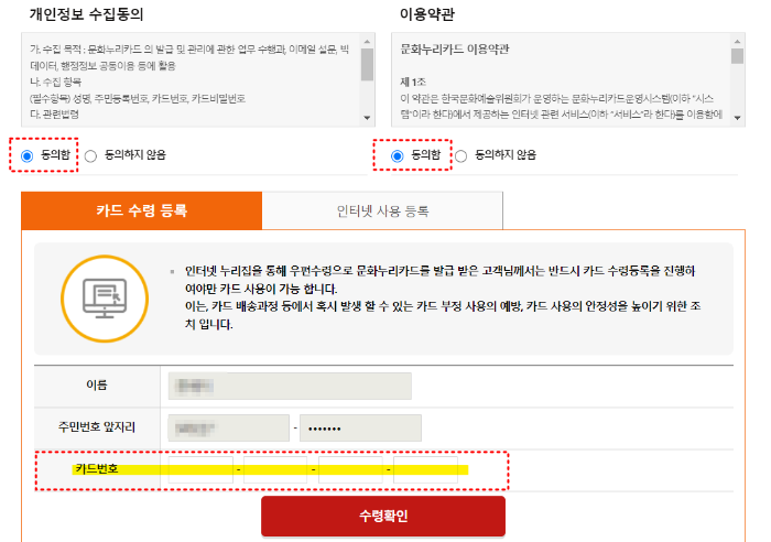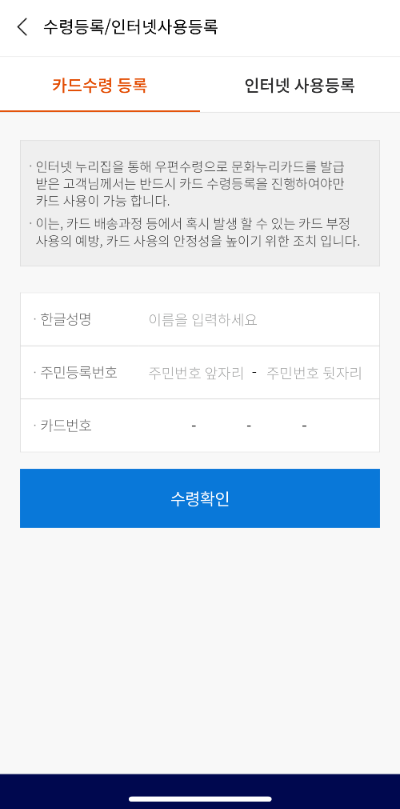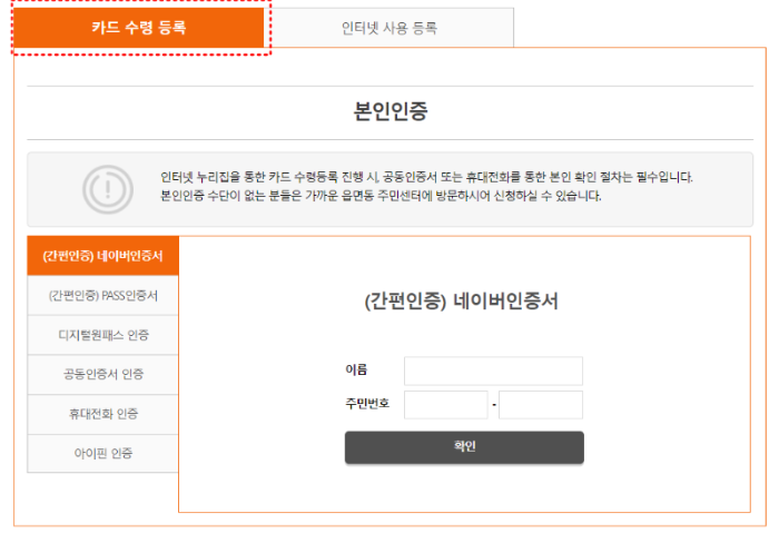 ②본인인증 후 카드 수령등록을 해주시면 됩니다.