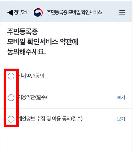③주민등록증 모바일 확인 서비스 약관에 동의하기