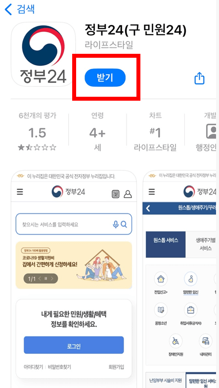① 정부24(구 민원24) 앱 다운로드 후 로그인하기
