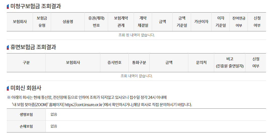 5. 미청구보험금 및 휴면보험금 조회 결과 확인하기