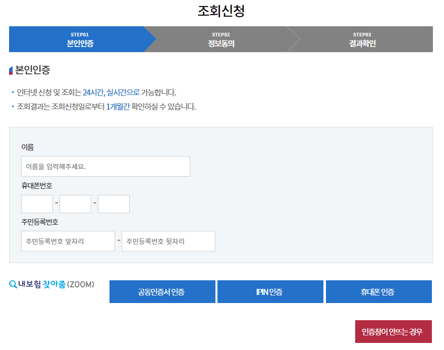 내 보험 찾아줌 서비스 이용 방법은 아래와 같습니다.
