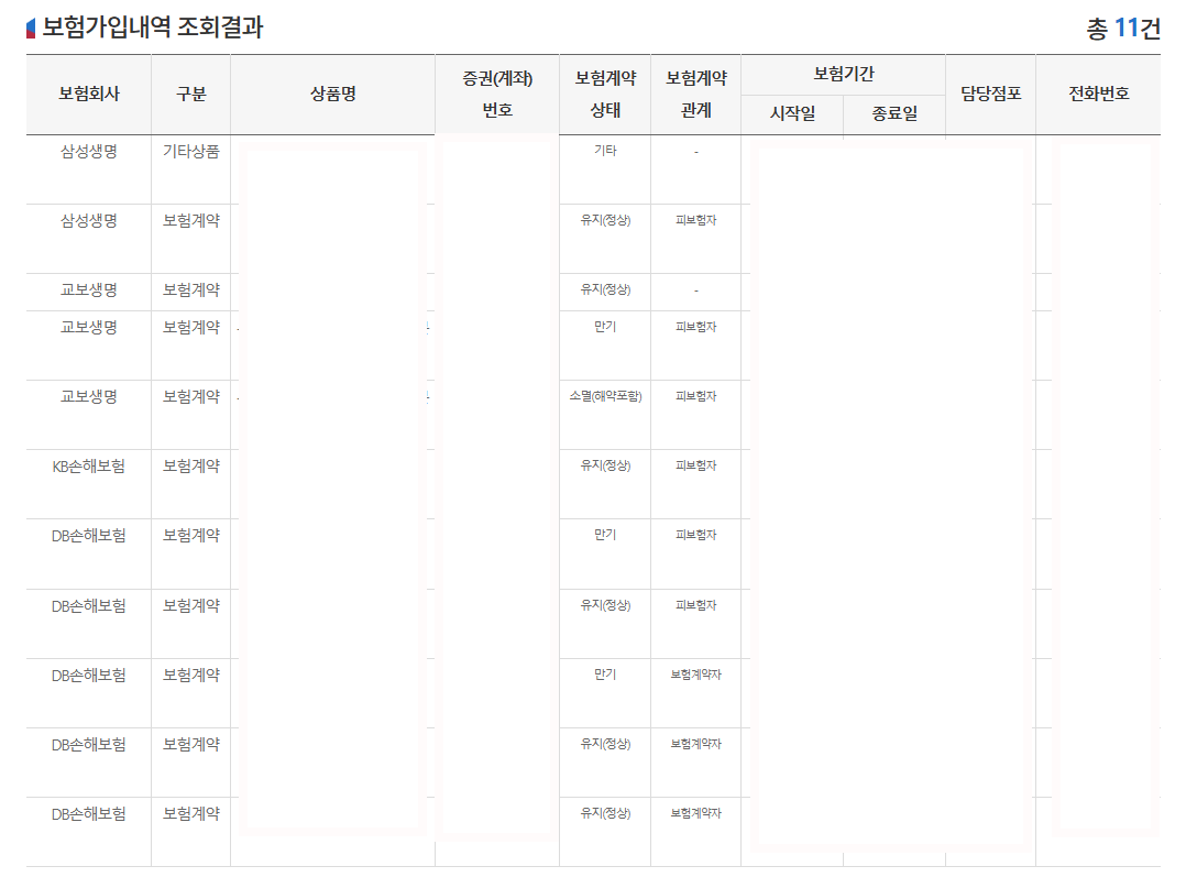 4. 가입된 보험 내역 조회 결과 확인하기