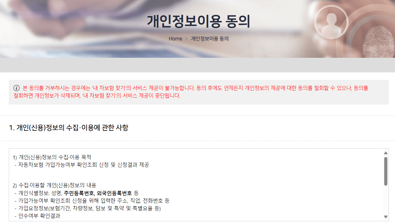 내차보험찾기 무료서비스 이용방법은 아래와 같습니다.