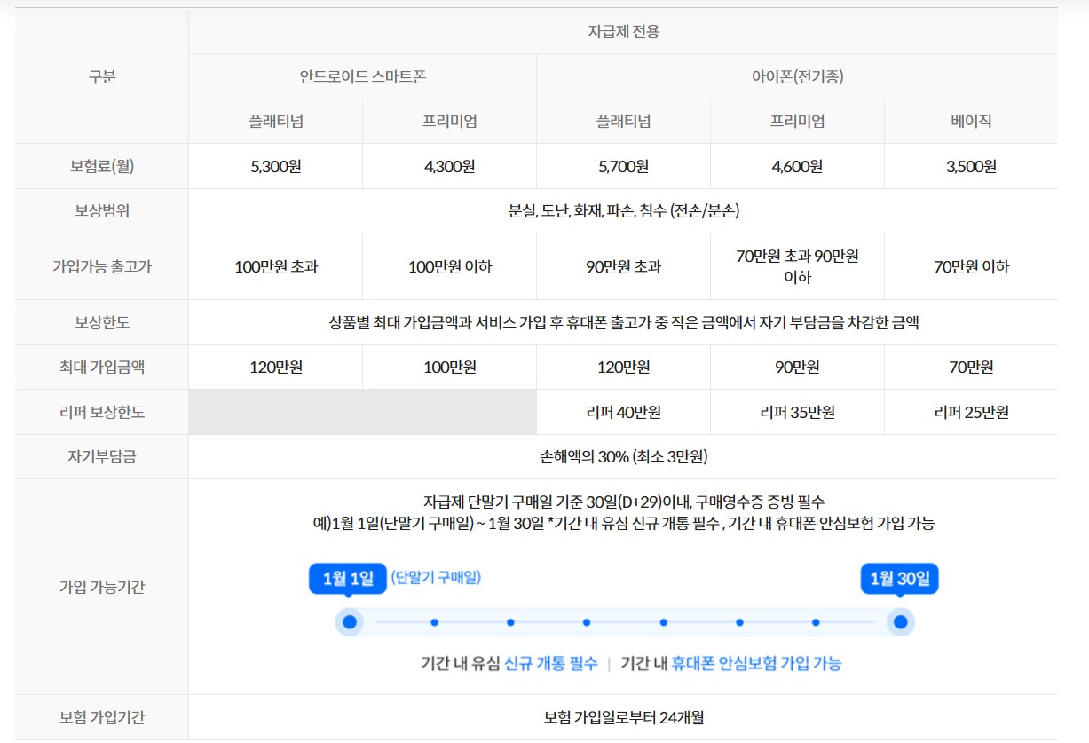 신규 고객의 경우 개통 시 해당 부가서비스 신청 작성 후 보험 가입하시면 됩니다. 하지만 기존에 KT M 모바일을 사용하고 계셨던 기존 고객의 경우 개통 후 29일 이내에 고객센터로 접수 후 가입해 주시면 됩니다.