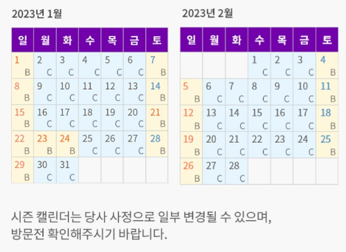 에버랜드 홈페이지에서 시즌 달력을 꼭 확인하시길 바랍니다!