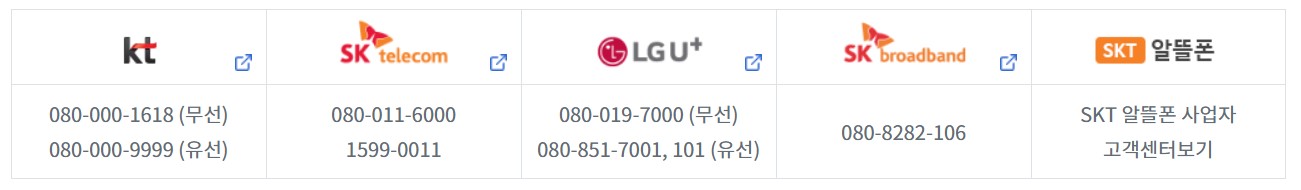 알려드린 '스마트초이스' 사이트를 이용하지 않고, 통신사에 직접 전화를 하셔서 조회할 수 있습니다. 아래에 통신사별 고객센터를 정리해두었으니 참고하시면 됩니다.