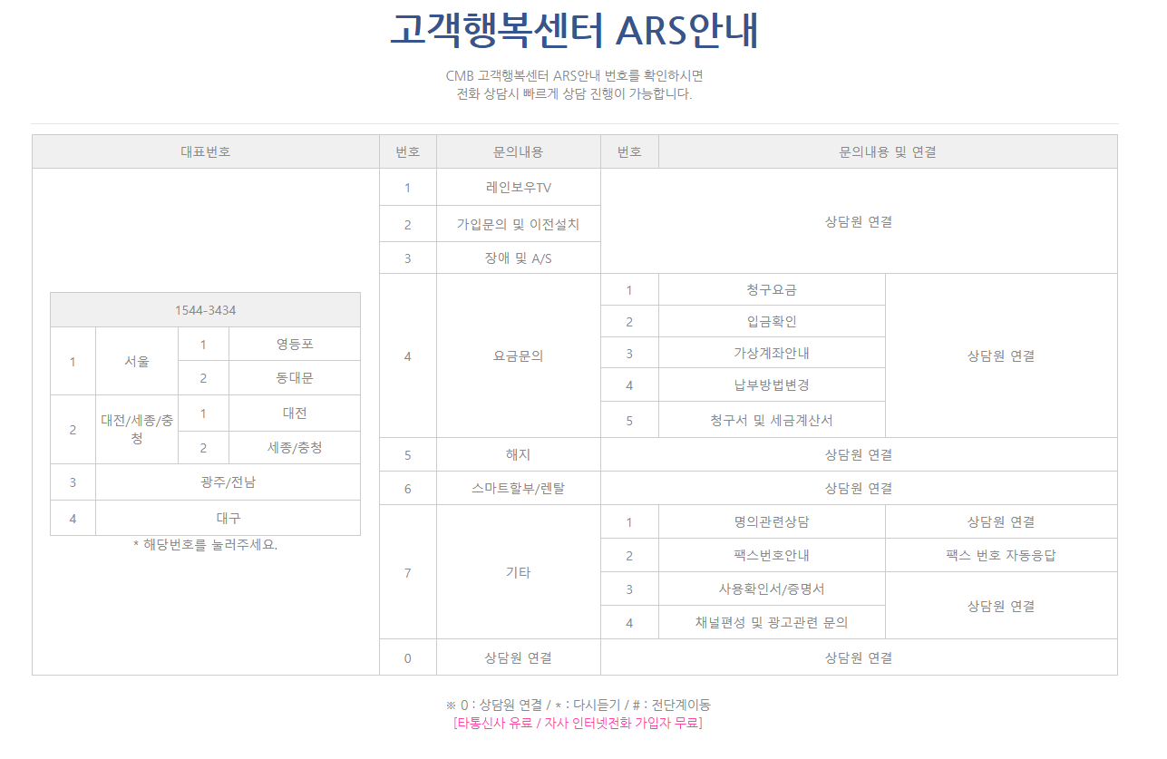 1. CMB 고객센터 전화번호 및 ARS안내