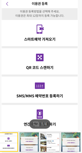 등록방법에는 스마트 예약가져오기, QR코드 스캔하기, SMS/MMS 예약번호 등록하기 등이 있으니 편하신 방법을 이용해주시면 됩니다.