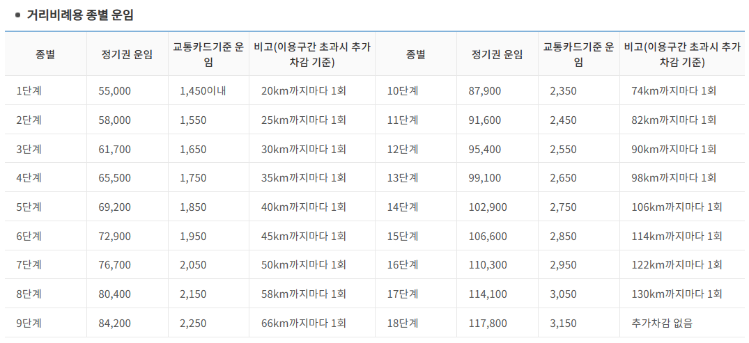 도봉산 <->금천구청 구간처럼 거리가 멀어서 추가 운임비가 붙을 경우에는 더 많은 돈을 아낄 수 있습니다. 도봉산 <->금천구청 일반 교통카드 1회 기본운임비 1850원*60회=111,000원인데 이걸 55,000원 정기권으로 이용할 수 있으니 무려 56,000원이나 할인받을 수 있습니다! (정기권으로 할인혜택을 받으시려면 최소 45회 이상은 사용하셔야 합니다!)